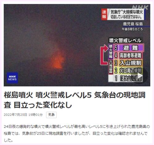 今月25日の深夜、(新)ブログ記事「鹿児島から東へ」で、前日24日の夜に噴火した鹿児島県の桜島と1985年の123便事件の奇妙な関連性について指摘しました。25日のNHKさんのネット報道には、まるで大災害が起きたような長文の特集記事が組まれています。噴火の…