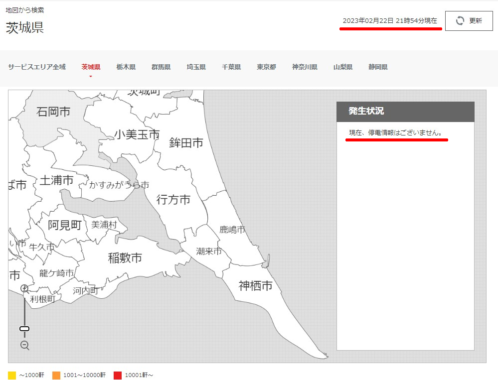 あれ?停電地域は見つかりません。どうしたことでしょう?