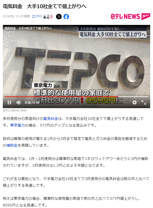 (新)ブログ記事「米価高騰の行末」で、米価格の高騰についてだんまりを決めているなら、隠し備蓄庫の所在を協力企業名と共に公表するとお知らせしましたが、食べ物で国民を苦しめておいて、今度は電気ですか。